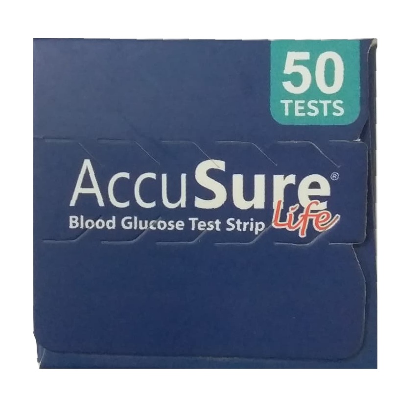The AccuSure Life Blood Glucose Test Strips (50 strips) are reliable diagnostic consumables designed for accurate monitoring of blood sugar levels using the AccuSure Life glucometer. Manufactured by Microgene Diagnostic Systems, these strips are widely used for both home-based diabetes management and clinical testing.