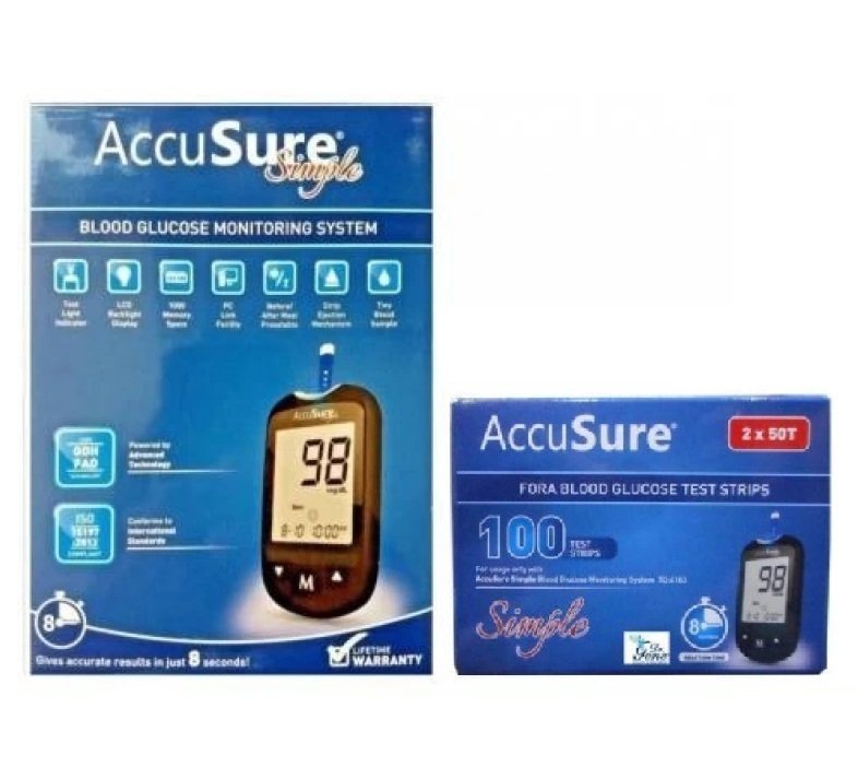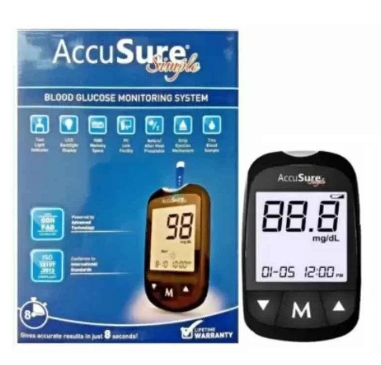 AccuSure Simple Generation Blood Glucose Monitoring System is specially designed to help measure blood sugar levels. It is of benefit to those who suffer from diabetes and for those who want to keep a check on their blood sugar levels.