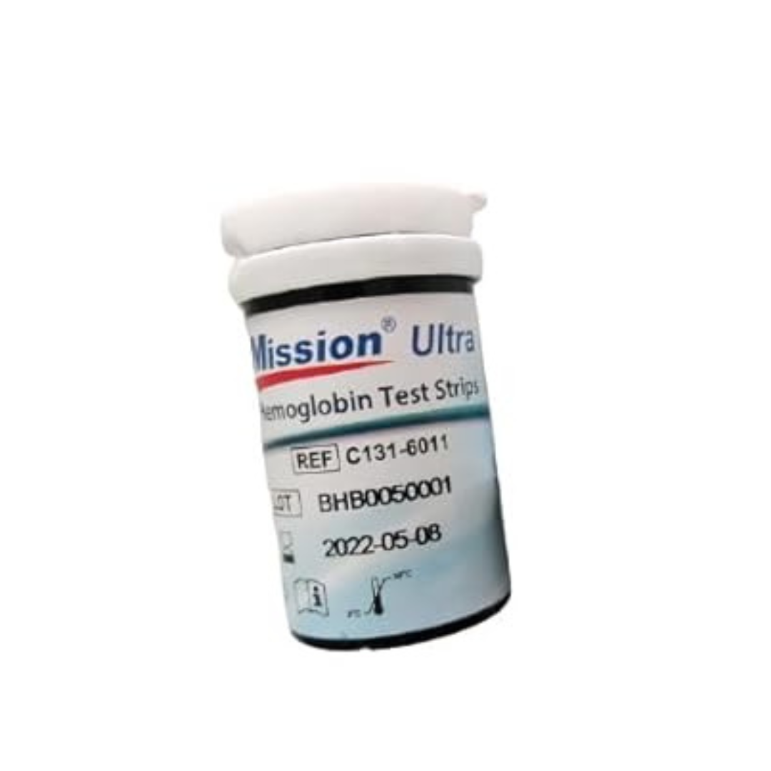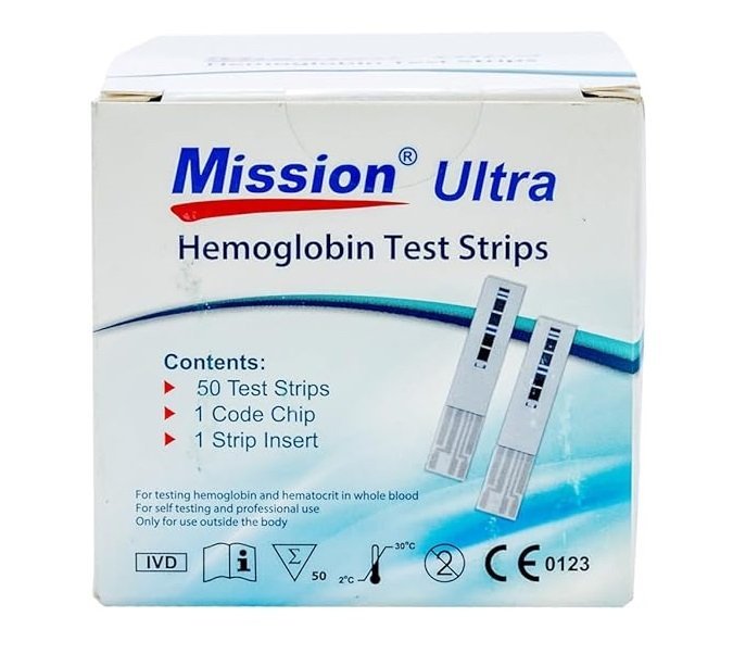 • Mission hemoglobin test strips 50.