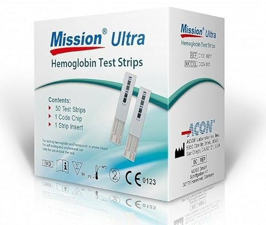 • Acon Mission Hb Ultra Hemoglobin 50 Test Strip.