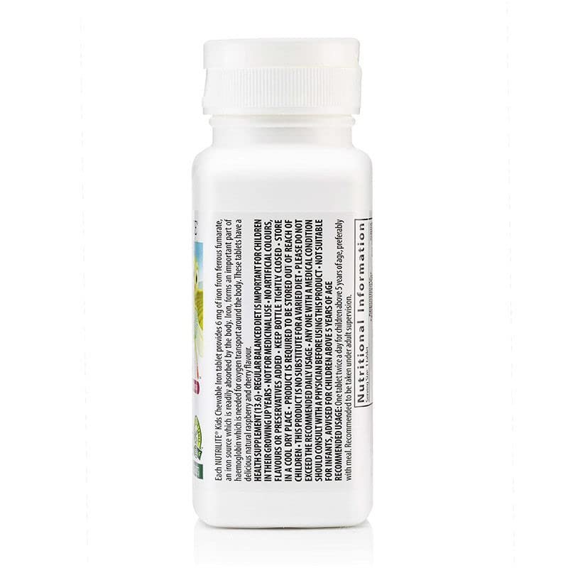 Iron helps with the transportation of oxygen in the body, required for the production and release of energy. Nutrilite Kids Chewable Iron contains ferrous fumarate, which is easily absorbed by the body.