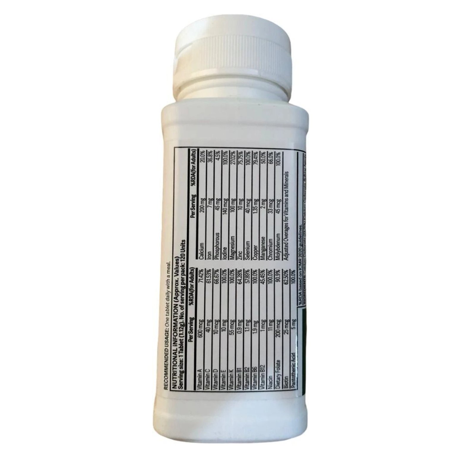 1 tablet contains 13 vitamins and 11 minerals, which provide broad nutritional coverage and balance of nutrients. 13 nutrients cover 100% Recommended Dietary Allowance (RDA) in one tablet, 4 nutrients cover 50% or more of RDA in one tablet.