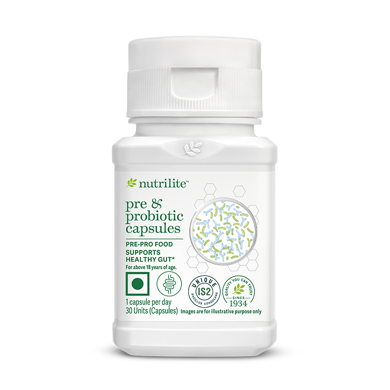 Amway’s Nutrilite Pre & Probiotic Capsules are scientifically developed to support digestive balance, nutrient absorption, and overall gut wellness. With the strength of 6 beneficial probiotic strains and nourishing prebiotics, this formula helps maintain a healthy digestive environment and supports immunity.