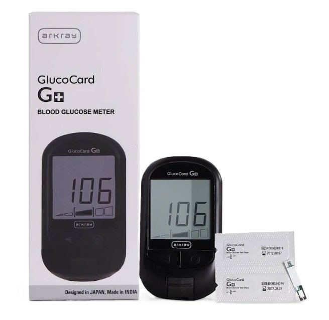 Arkray G+ Blood Glucose Monitor ganufactured in India and designed with trusted and advanced Japanese technology, ARKRAY GLUCOCARD G+ comes with Individually Packed Strips that ensures accurate results. Individually packed strips minimize exposure to humidity and increases the shelf life of the strips till its expiry date. With functions such as auto coding, before and after meal result flagging.