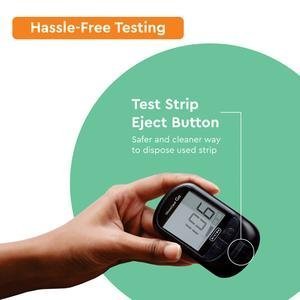 TEST STRIP SAFE EJECT BUTTON: Safer and cleaner way to dispose used strip without touching it.