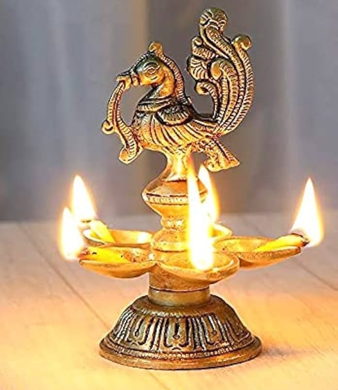 Bird Design Brass Diya Deepak Oil Lamp In Glossy Black Antique Finished Puja Item Home Decor Gift Pack