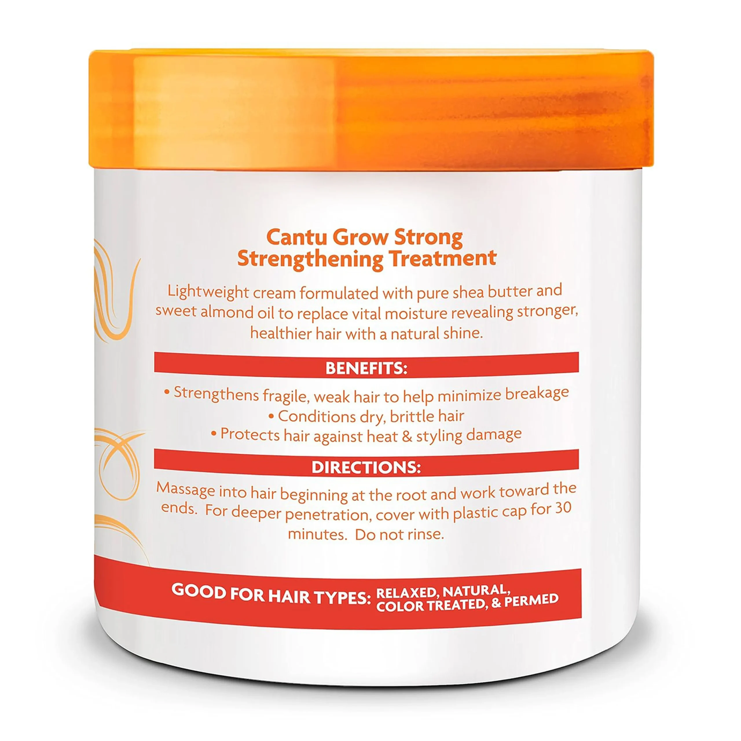 Cantu Shea Butter Grow Strong Strengthening Treatment 173gm lightweight cream formulated with pure shea butter and sweet almond oil to replace vital moisture revealing stronger, healthier hair with a natural shine.