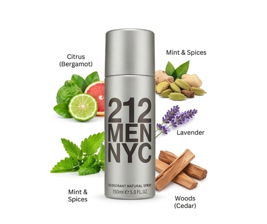 Carolina Herrera 212 NYC for Men Deodorant Spray (150 ml) is designed for the urban, confident man who walks the fine line between modernity and sophistication. It captures the energy, style and boldness of city life, delivering freshness combined with spicy and woody warmth. It functions not only to mask body odor but to leave a lingering aroma that complements one’s overall fragrance wardrobe. The packaging is sleek and modern, typically a cylindrical spray can, done in metallic/silver tones, reflecting the fragrance’s polished yet streetwise attitude.
