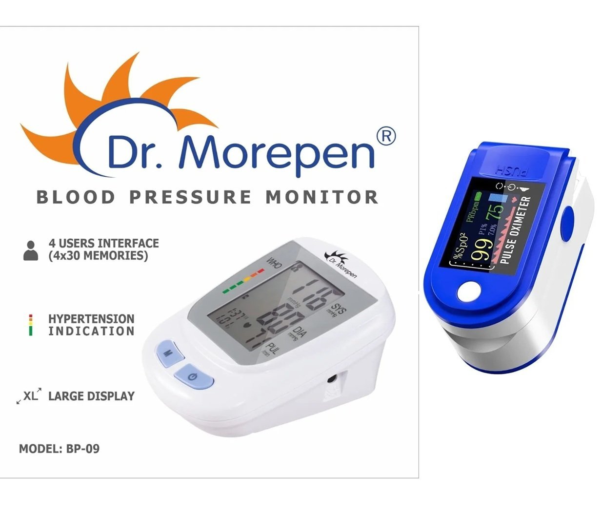 Dr Morepen BP Monitor BP-09 With Pulse Oximeter Fingertip.