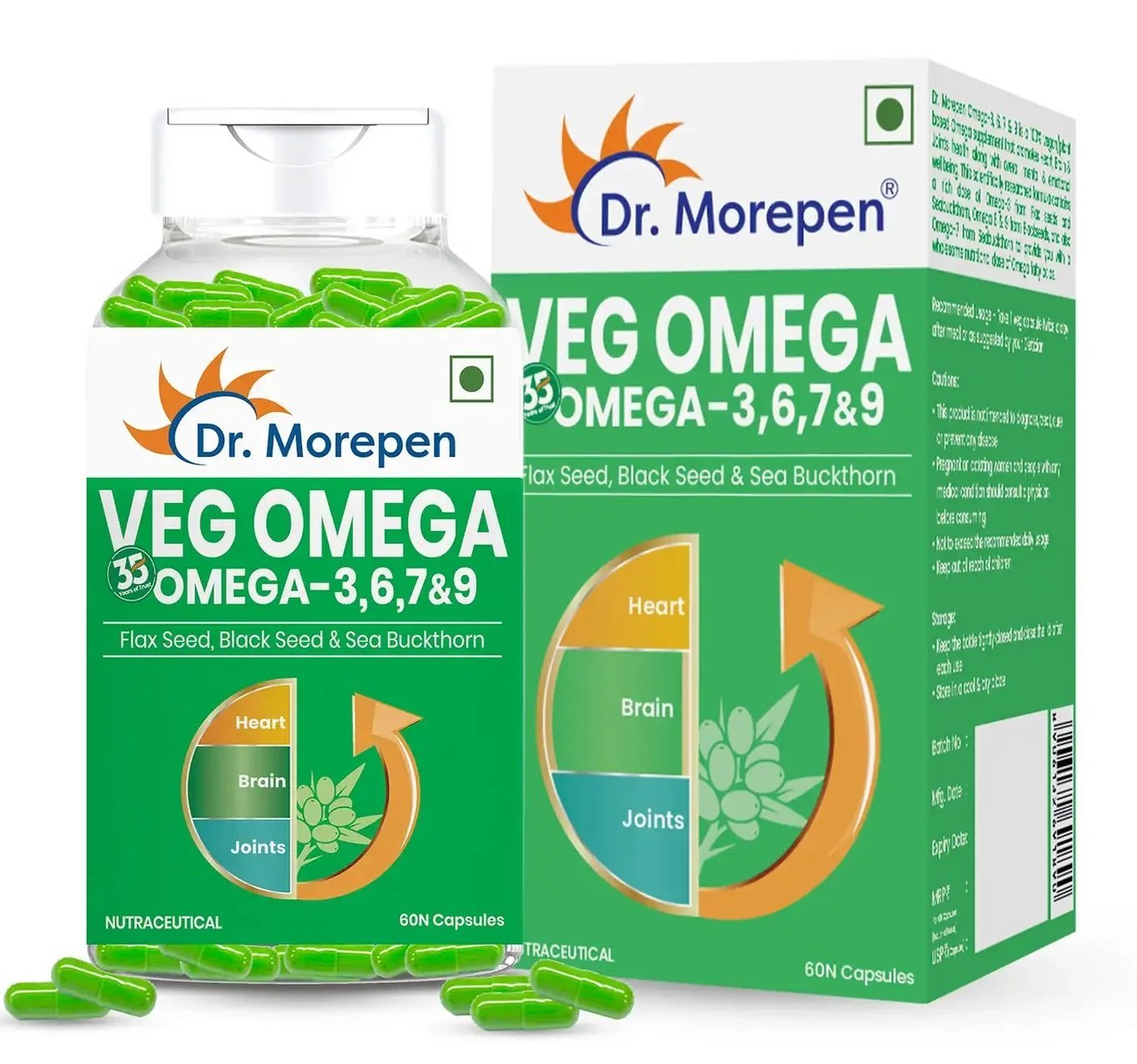 Dr. Morepen Vegetarian Omega 3 Capsules offer a plant-based source of essential omega fatty acids, including Omega-3, Omega-6, Omega-7, and Omega-9. These capsules are designed to complement a balanced diet and support overall well-being.