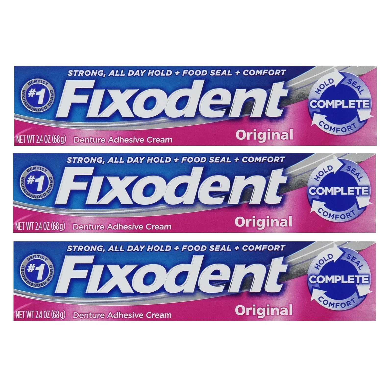 • Fixodent Complete Denture Adhesive Cream Original 24 or 68 g (Pack of 3).