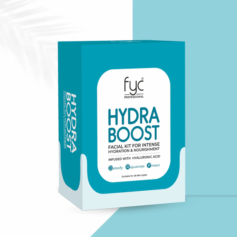 FYC Hydra Boost Facial Kit is an advanced hydration-focused facial treatment infused with Hyaluronic Acid for intense moisture retention and skin nourishment. This kit deeply hydrates dry and dehydrated skin, improves skin elasticity and restores a plump, fresh appearance. It helps strengthen the skin’s moisture barrier, leaving the skin soft, smooth, supple and revitalised. Perfect for dry, normal and dehydrated skin types, this facial kit delivers long-lasting hydration and a healthy glow.