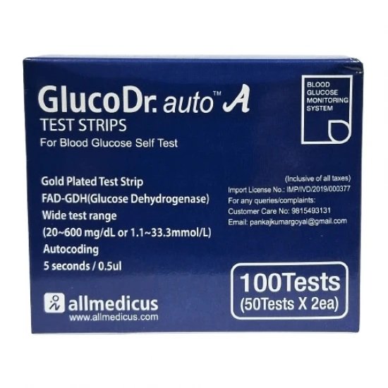 • Gluco Dr. Auto A Blood Glucose 100 Test Strips.