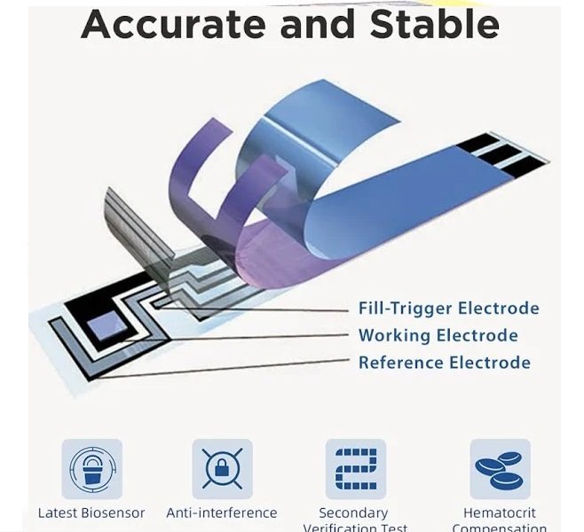 Small Quantity Sample: It adopts a new bio-sensor technology composed of electro-chemical components and requires 1 µl volume of blood and the meter displays results between 20-600mg/dL.