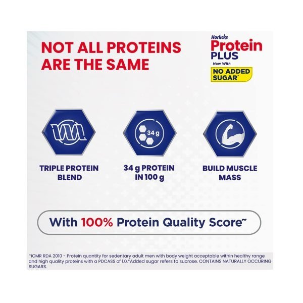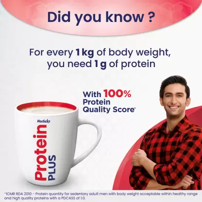 Horlicks Protein + Health And Nutrition Drink 400g (Vanilla) Pack of 2 specialized nutrition drink for adults has essential nutrients to support immunity, boost energy and metabolism. High quality protein for building and maintaining muscle mass can provide 34% of daily required protein when taken with milk contains micronutrients and macro nutrients to improve overall well being supports energy release in the body and helps to meet the weight and muscle goals.