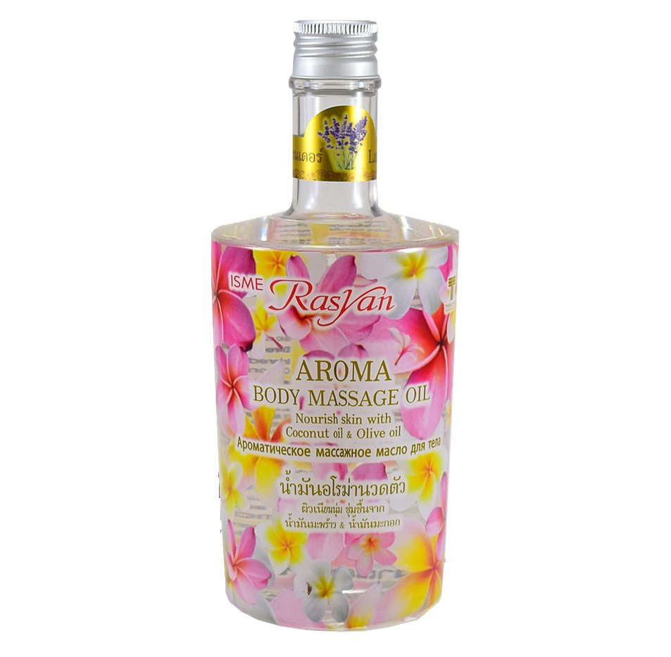 Isme Rasyan Aroma Coconut With Olive Body Massage Oil 450 ml (Lavender) restores the moisture and softness of your skin. A mix of olive and coconut oils nourish the skin, helping to prevent premature aging by destroying free radicals. Improves skin condition, strengthens and nourishes. Leaves a light floral scent on the body.
