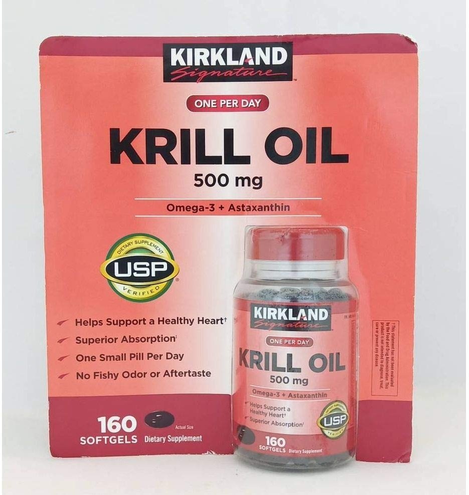Kirkland Signature Krill Oil 500 mg 160 Softgels supply is 100% Antarctic krill oil, which provides superior absorption. Sourced from the deep pristine waters of the Antarctic, each softgel is small and easy to swallow with no fishy aftertaste. Kirkland Signature Krill Oil contains 150 mcg naturally occurring astaxanthin, which gives the softgel its natural red color. The krill oil used is Friend of the Sea certified to protect the Antarctic eco-system.