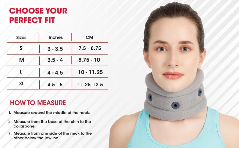 When fitting: keep your head upright, chin level, look forward. Adjust Velcro such that you feel support under the chin and around the neck.