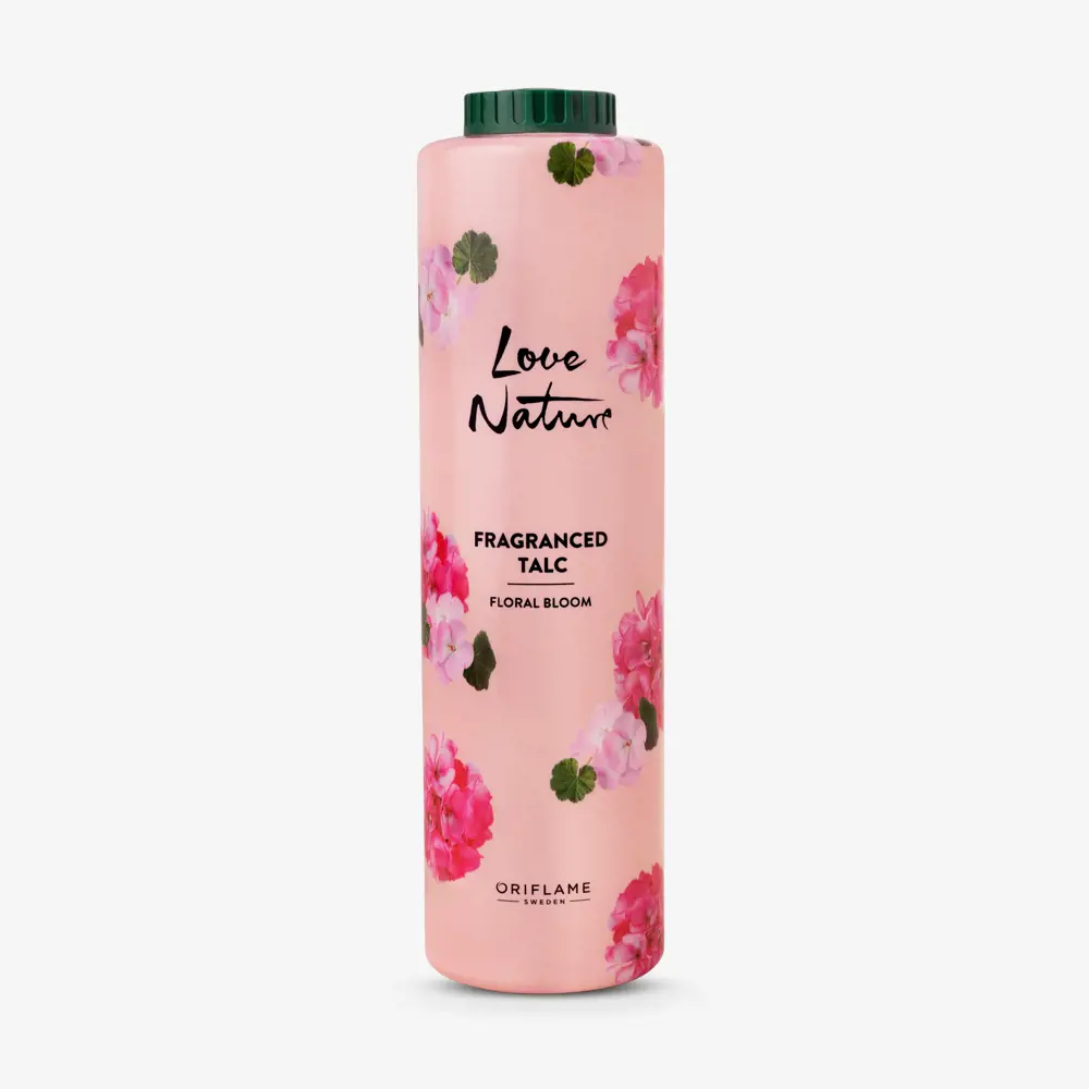 Oriflame Love Nature Fragranced Talc Floral Bloom Keep skin feeling comfortable and fresh anytime with new Love Nature Talcs. They absorb moisture and let you enjoy soft, smooth skin with a wonderfully perfumed nature scent. Delightful floral bloom scent Keeps skin dry, smooth and soft Protects against moisture and malodor.