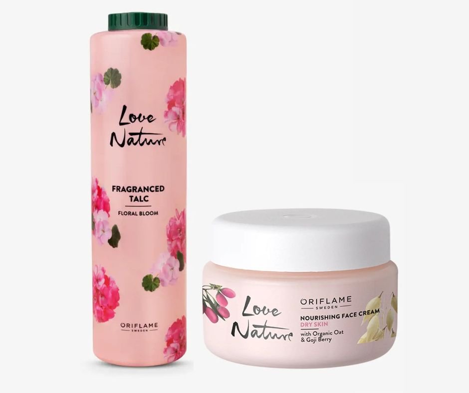 Love Nature Fragranced Talc Floral Bloom with nourshing face cream
