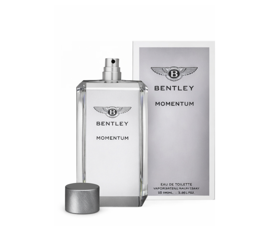 Momentum by Bentley Edu da Toilette Matching sleek scent design with exceptional materials, Bentley Momentum meets the same, exacting standards as Bentley motorcars. In this new, forceful composition, the renowned master perfumer Nathalie Lorson creates excitement by contrasting aromatic freshness with potent, vibrant woods. As the fragrance opens, a splash of aquatic notes energises sparkling bergamot and cool green violet. In contrast to this refreshing style, clary sage adds herbaceous, aromatic accents, hinting at the sensuous warmth that unfolds in the heart notes. Gaining momentum, the scent segues into a strikingly modern accord of ambergris and cashmere wood, evoking clean, sun-warmed skin and polished wood. The dry-down reveals a deep, burnished blend of smooth sandalwood and dusky tonka bean, in a sensuous trail of musk and moss.