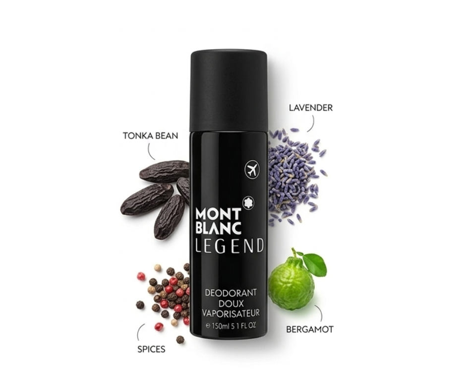 Mont Blanc Legend Deodorant 150ml is a premium aerosol body spray designed for men who prefer a fresh, masculine, and sophisticated fragrance for everyday use. Inspired by the iconic Mont Blanc Legend perfume, it features a well-balanced aromatic and woody scent profile that opens with fresh citrus and fruity notes like tangerine and light green accords, followed by a heart of floral and woody elements such as rose, cedar, and subtle fruity nuances, and settles into a warm base of sandalwood, musk, and woody tones for a smooth, long-lasting finish. This deodorant provides effective odor protection and keeps you feeling fresh for several hours, making it suitable for office wear, casual outings, and daily grooming routines. Its lightweight, quick-drying formula ensures no sticky residue on the skin, while the 150ml spray can offers convenient and travel-friendly usage. The fragrance is versatile and appealing, delivering a clean, elegant scent that is not overpowering but noticeable enough to leave a refined impression. Additionally, it complements the Mont Blanc Legend perfume range, allowing users to layer the scent for enhanced longevity