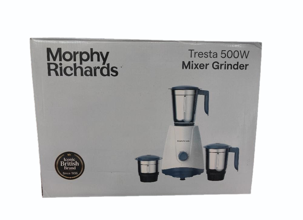 The Morphy Richards Tresta 500W Mixer Grinder is a compact and reliable kitchen appliance designed for everyday grinding, blending, and mixing needs. With a powerful motor and durable stainless-steel jars, it ensures efficient performance for preparing chutneys, spices, batters, and smoothies. Ideal for small to medium households, this mixer grinder combines functionality, safety, and modern design for hassle-free cooking.