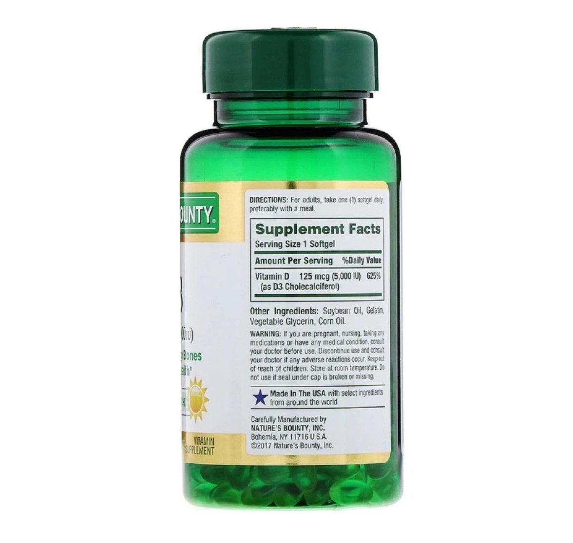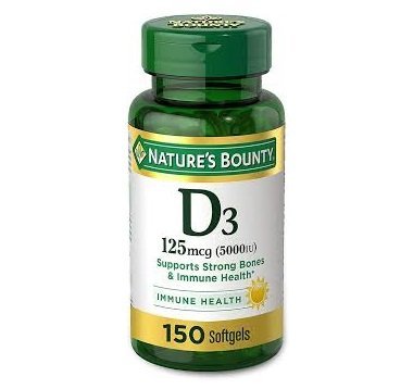 • Nature’s Bounty D3 125mcg 5000IU 150 Softgels.