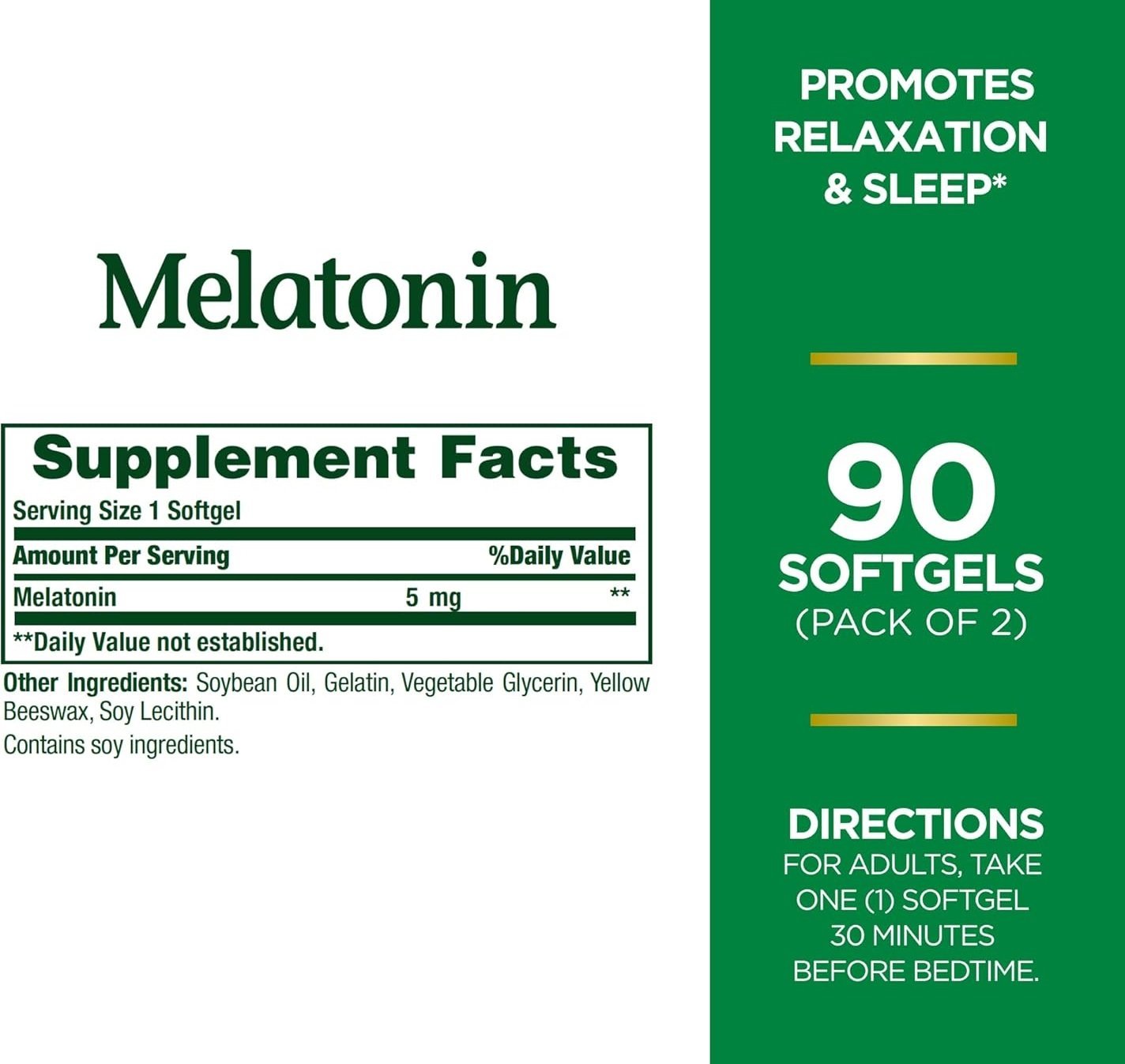 - Product: Melatonin 5mg, 90 Softgels