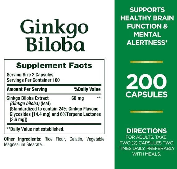 • Nature’s Bounty Super Ginkgo Biloba 60mg 200 Capsules.
