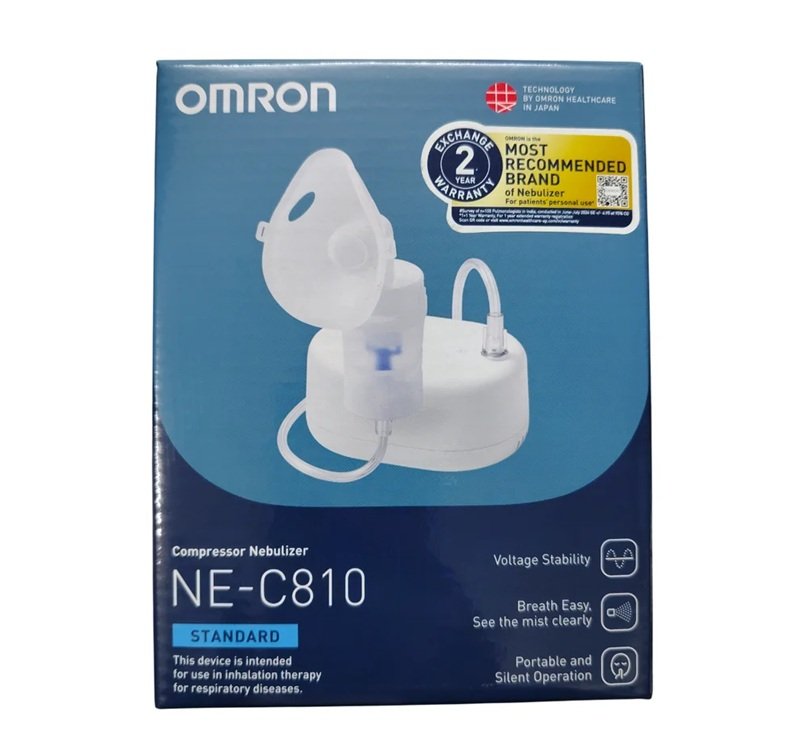 Omron NE-C810 nebulizer is a compact compressor-type inhalation device designed to deliver medication as a fine mist for easier breathing therapy. It’s suitable for both adults and children, with masks included for different age groups, making it a versatile choice for routine home use.