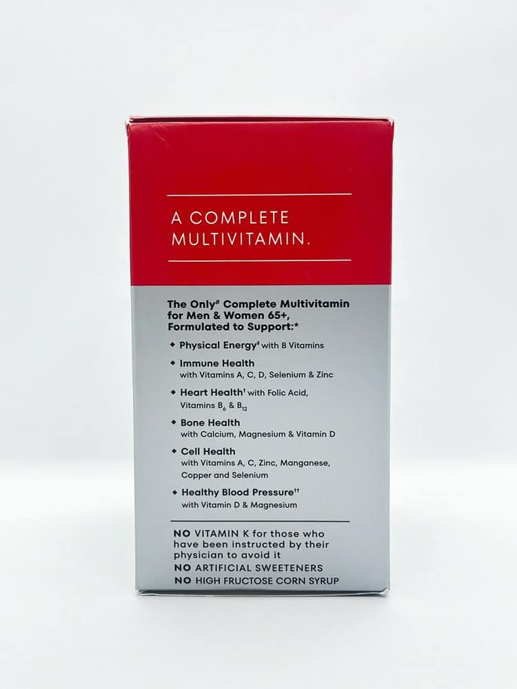 One A Day Men & Women’s 65+ Multi provides a variety of essential nutrients in two convenient, easy-to-swallow tablets. One A Day 65+ Multi is a complete multivitamin formulated for men and women 65 years and older, containing key nutrients important for this age group.