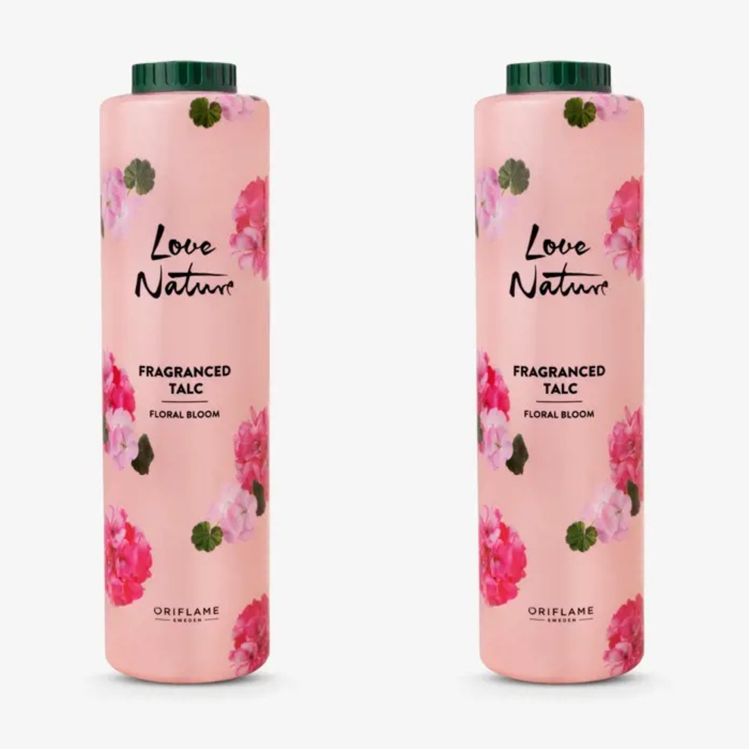 Oriflame Love Nature Fragranced Talc Floral Bloom Keep skin feeling comfortable and fresh anytime with new Love Nature Talcs. They absorb moisture and let you enjoy soft, smooth skin with a wonderfully perfumed nature scent. Delightful floral bloom scent Keeps skin dry, smooth and soft Protects against moisture and malodor.