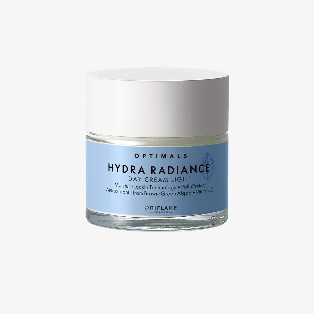 Oriflame Optimals Hydra Radiance Day Cream that leaves thirsty skin soft, supple and refreshed. Formulated with a Swedish natural ingredient blend of Red Algae, Brown Algae and Aqua Minerals with Vitamin C and Anti-pollution Active.