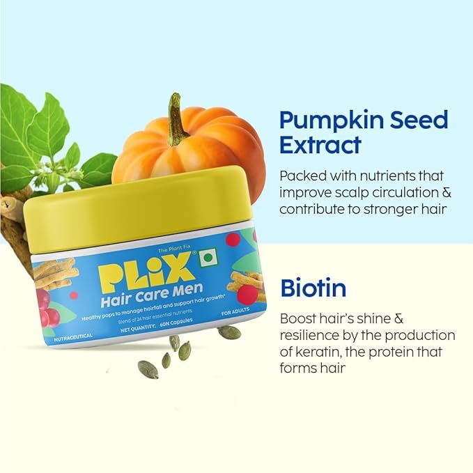- Reduce Stress & baldness : Ashwagandha in Plix’s Hair Care Men helps reduce stress & improves nutrient uptake to hair follicles. It contains Lycopene that acts as a DHT (Dihydrotestosterone) blocker and reduces hair thinning & baldness. It helps increase hair growth by strengthening hair follicles.
