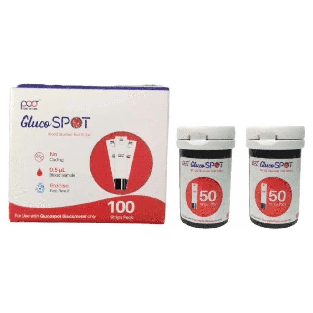 • Poct Gluco SPOT 100 Strips And 100 Lancets.