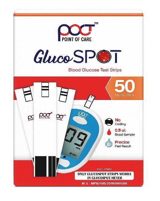 Poct Gluco SPOT Blood Glucose  are the key component of blood glucose testing. These small disposable strips of plastic are used along with blood glucose meter to measure the level of glucose in the blood.