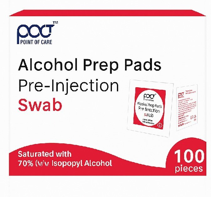 POCT Pre-Injection Swabs are individually packed alcohol prep pads designed for hygienic skin cleansing before injections or medical procedures. Each swab is saturated with 70% v/v Isopropyl Alcohol, ensuring effective disinfection and protection against bacteria and germs. Ideal for hospitals, clinics, diagnostic centers, and home healthcare use.