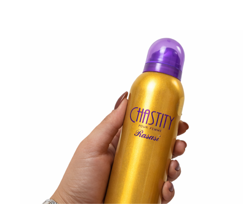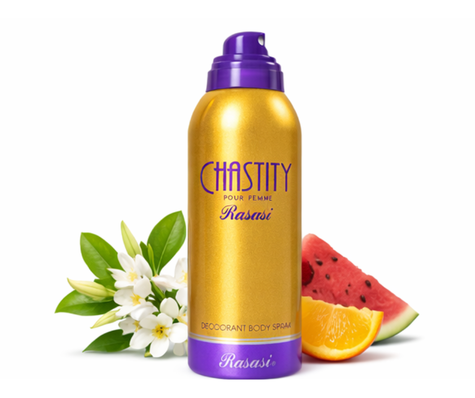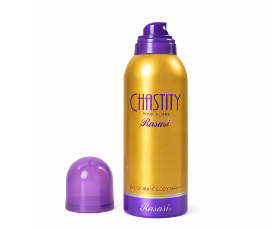 Rasasi Chastity Pour Femme Deodorant For Women 200ml that epitomizes a striking new image of a fresh young woman that matches the essence of purity.