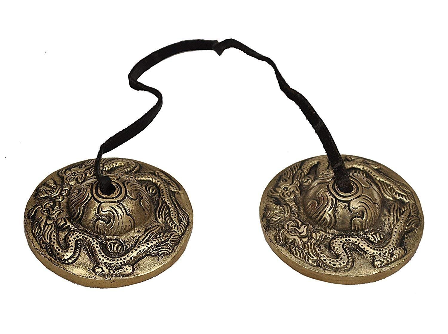 Relikart brass dragon handcrafted design manjeera manjeere are tied together with a white string, and it is a percussion instrument that produces a sweet tinkling sound when struck together.