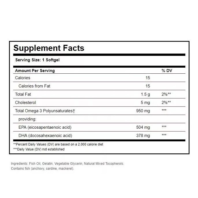 • Solgar Omega 3 Fish Oil 950mg Epa and Dha 100 Softgels.