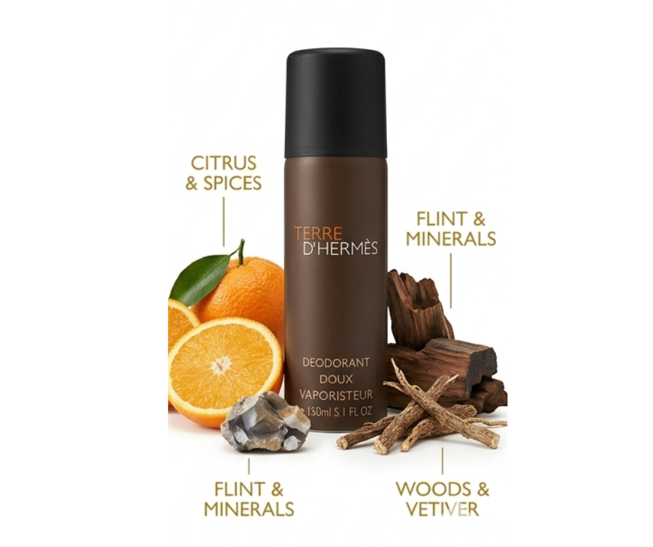 Terre D’ Hermes Paris Deodorant Body Spray 150ml A fragranced formula that offers protection, freshness and softness to the skin, for a sensation of comfort and well-being all day long. Another way to wear fragrance with Terre d’ hermes.