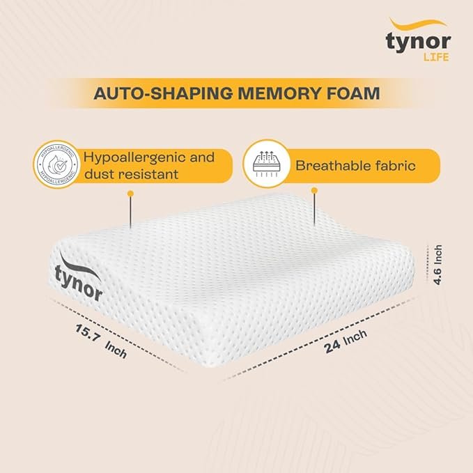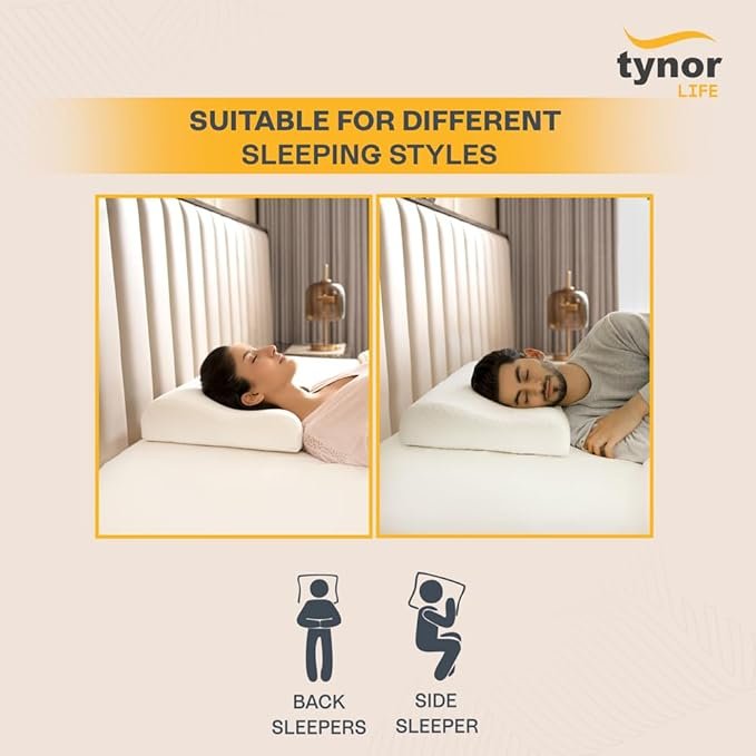Tynor Contoured cervical pillow- Memory Foam is anatomically shaped and designed to position during sleep. Contoured Cervical Pillow keeps the neck in slightly hyper extension position while sleeping. This counters the stress and strain of the day by relaxing the muscles, where we tend to keep the neck in the opposite Flexion position. It cures the cervical problems while we sleep. Corrects the sleeping posture and straightens the spine.