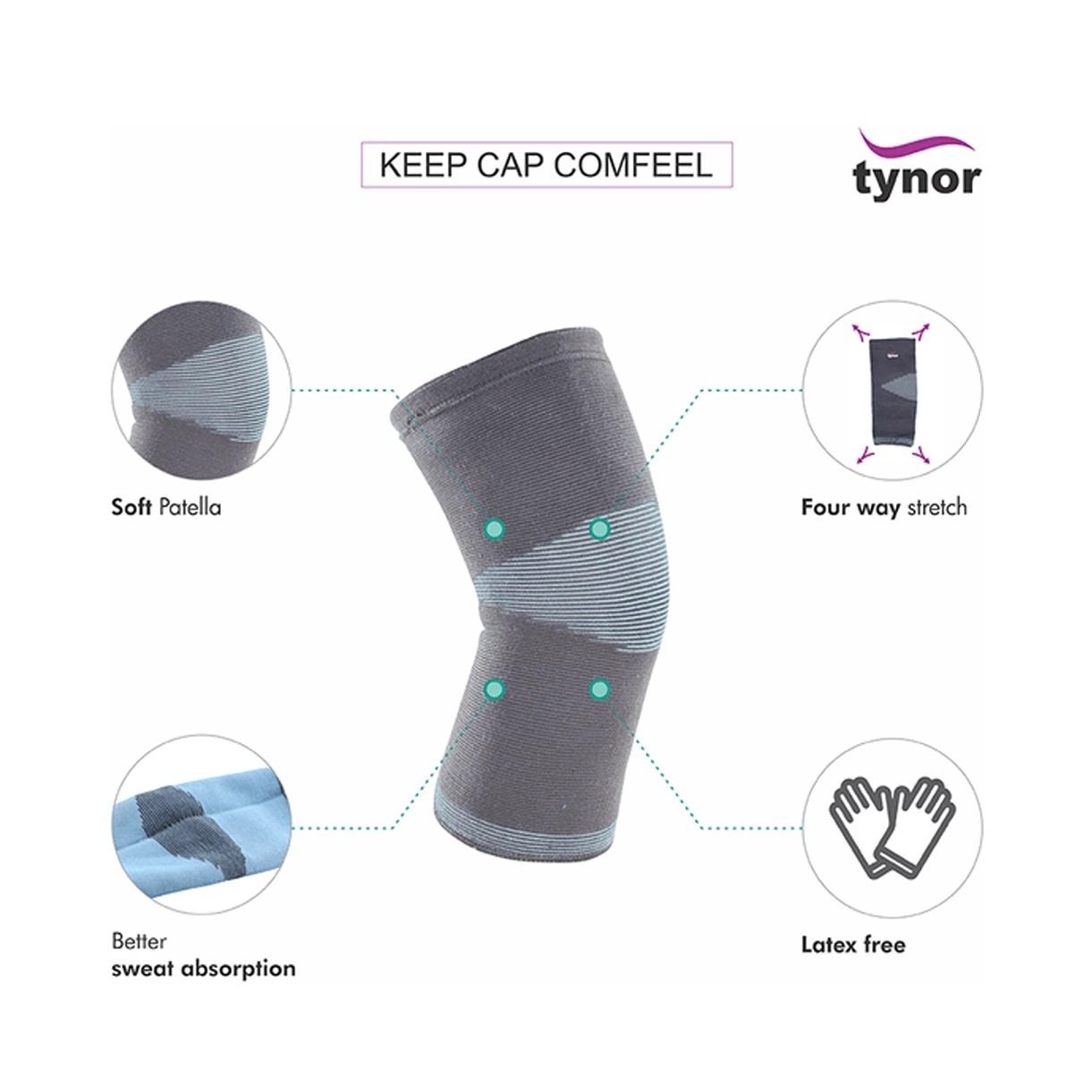 Tynor Knee Cap Comfeel (Pair) provides mild compression, warmth and support to the knee joint. It is used to allay pain and inflammation, generally associated with old age, arthritis or injury. anatomically shaped with reduced compression on patella ensures no Chondromalacia, even on prolonged use.