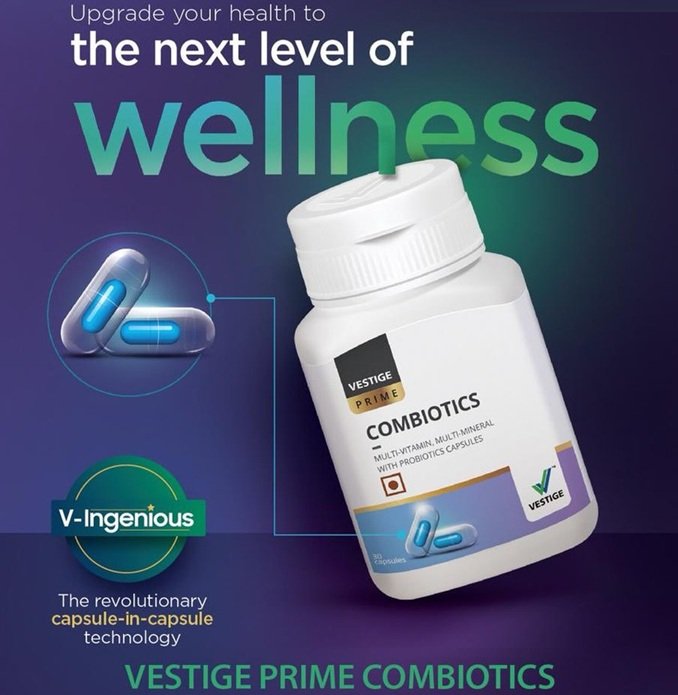 Vestige Combiotics 30 Capsules is a unique product in a capsule in capsule form with a mixture of multivitamins and minerals along with prebiotics and probiotics, which not only takes care of the body’s nutritional requirements but also supports a healthy digestive system.